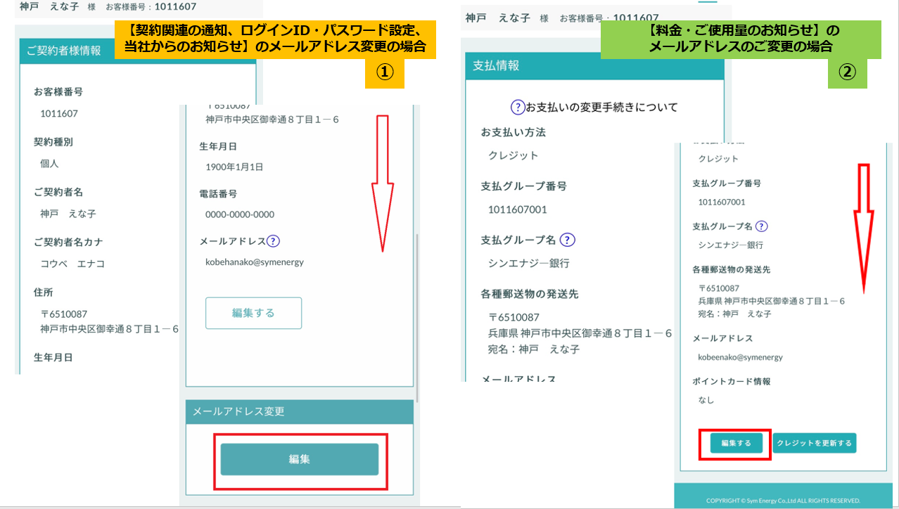 ※1契約関連通知等メールも、2検針票通知等メールの両方変更される場合は、それぞれご変更お願いいたします。