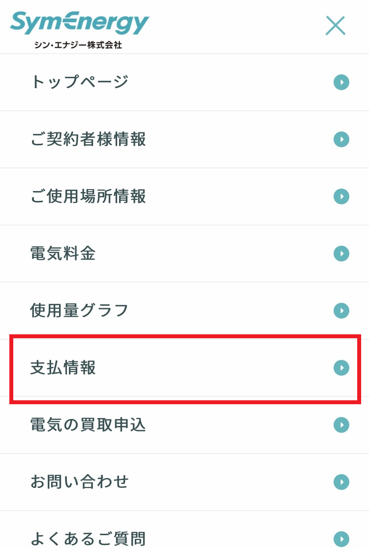メニュー内の支払情報ボタンをクリック/タップ